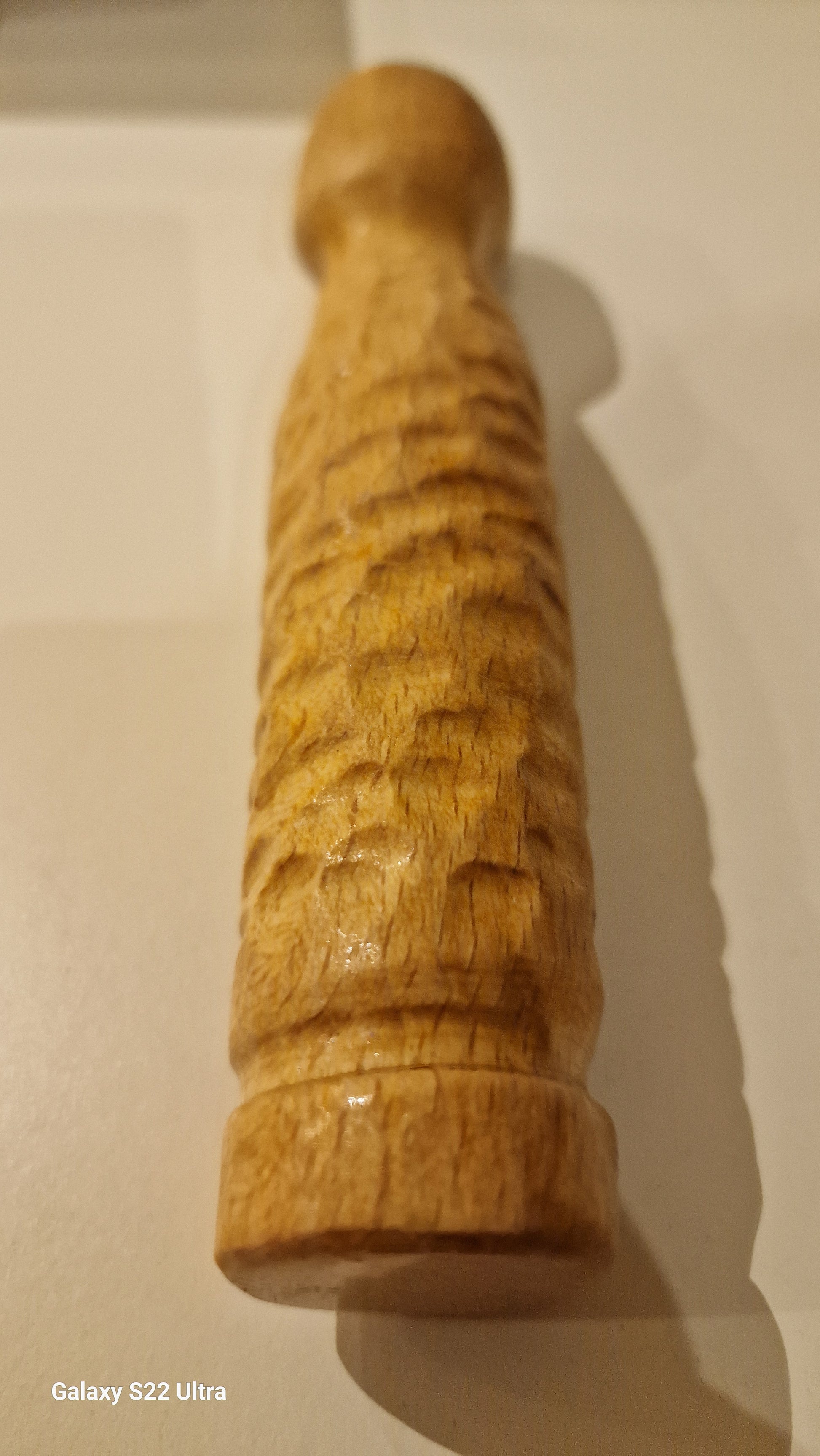 Das Besondere an diesen dildonischen Objekten ist eben, dass du jedes Maß und jede Form selbst bestimmen und beeinflussen kannst. Ein Stück Holz, sei es auch nur ein Ast, oder in diesem Fall ein Holzstück aus Buche, verändert nach Deinen Wünschen, seiner Kontur, seinem Sinn und auch seinem Gefühl. Dieses Objekt hat eine Biegung nach allen Dimensionen und ist daher im Feeling sehr intensiv.