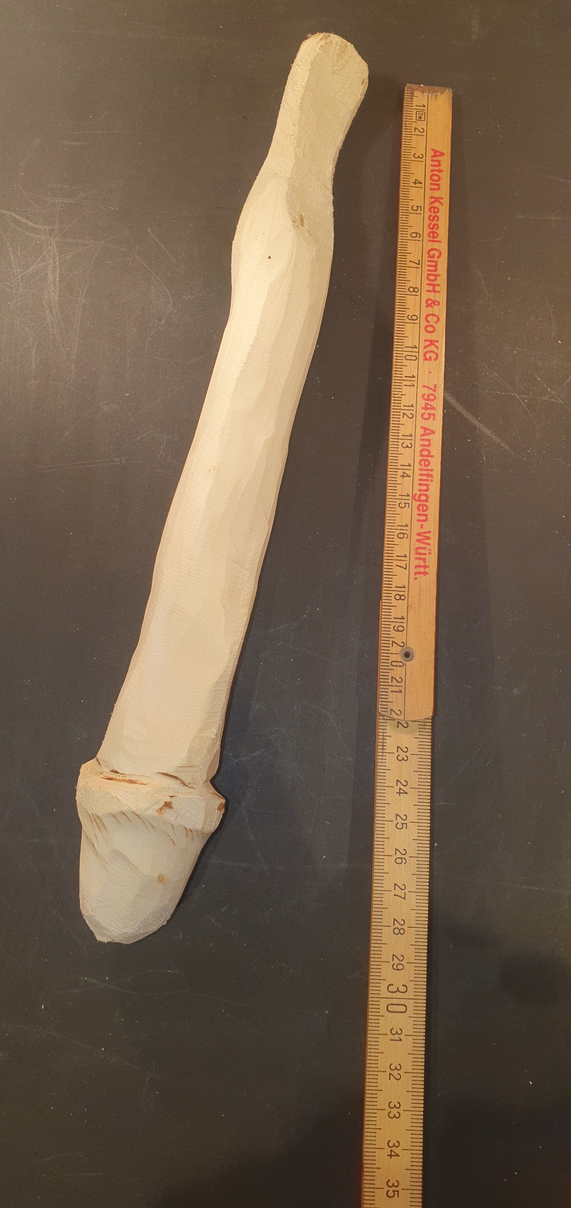 Die Länge beträgt 30 cm bei einem Durchmesser von max. 5cm (Eichel)