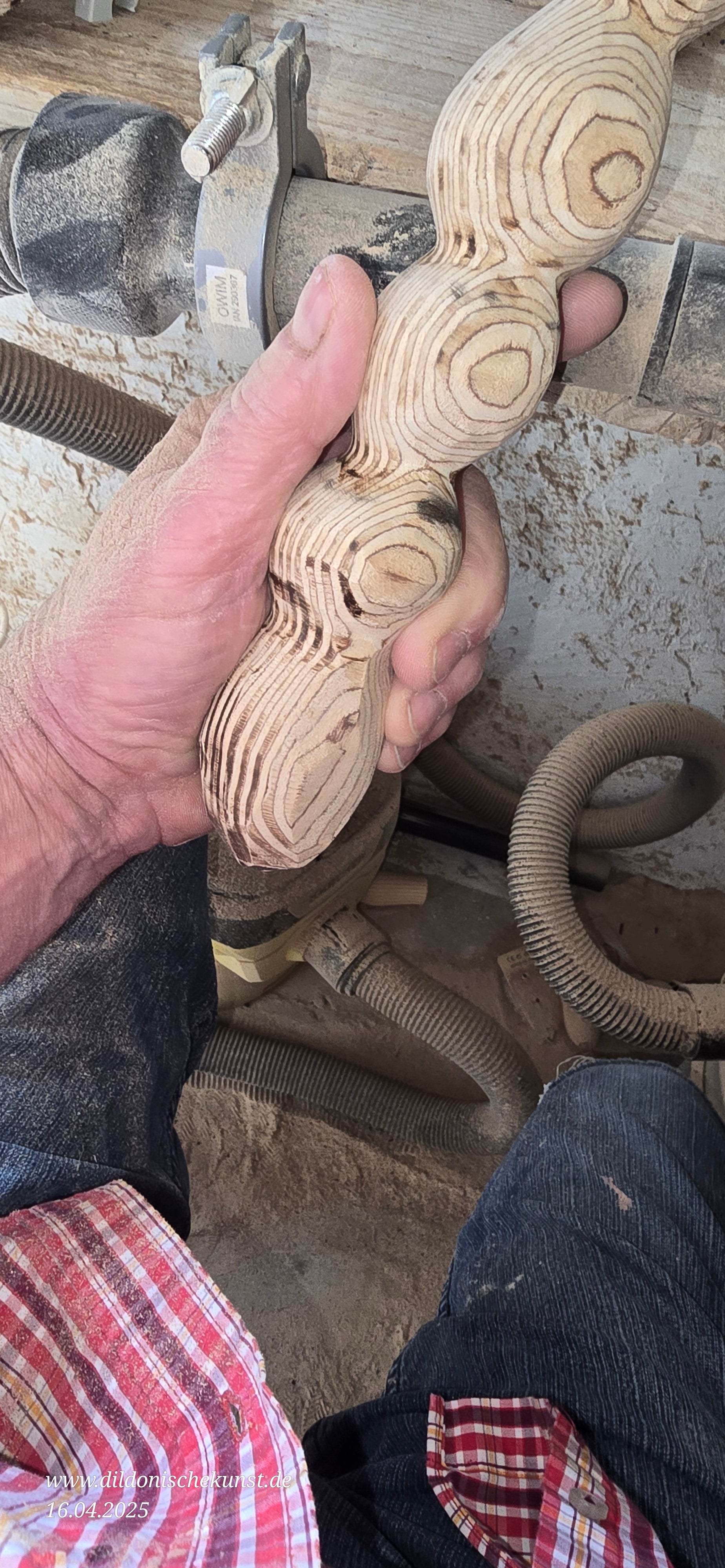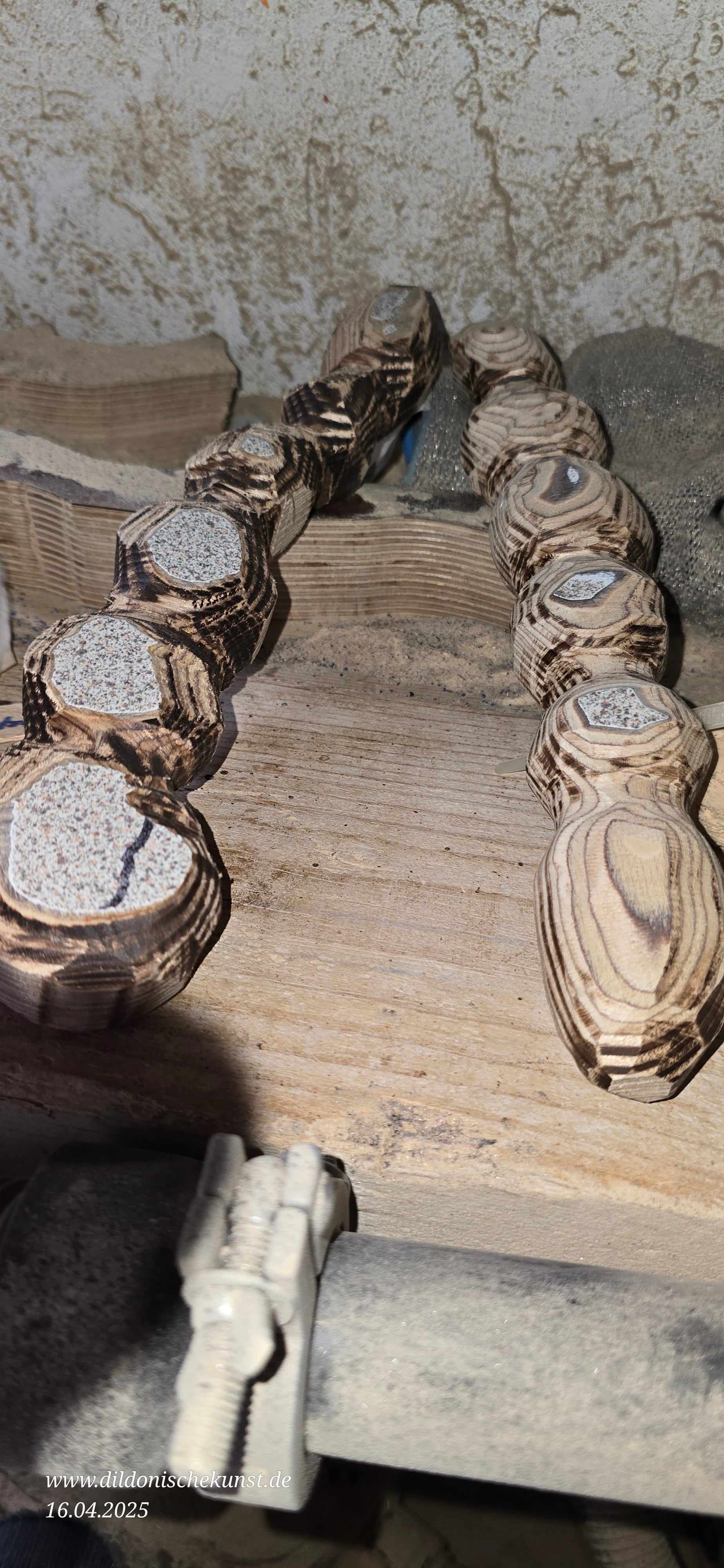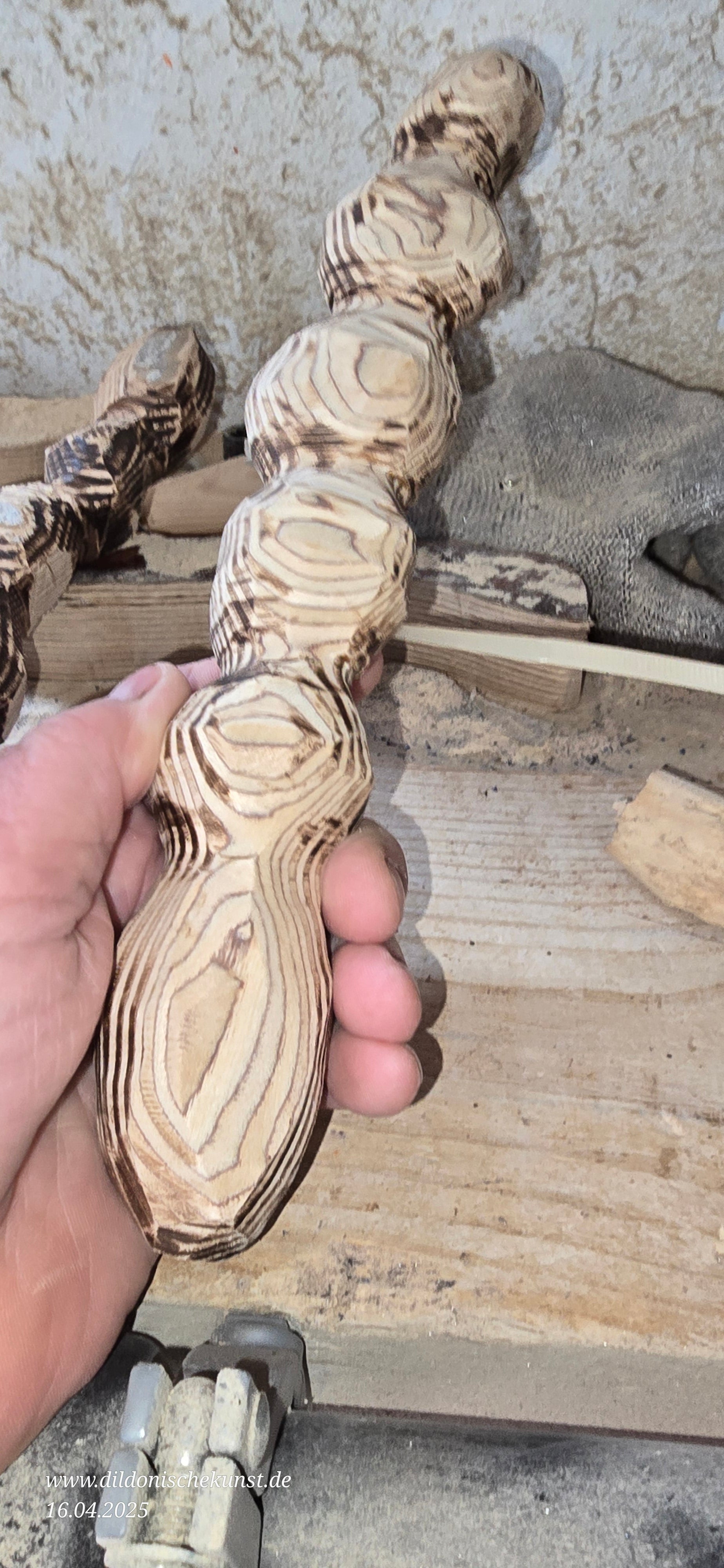 Die Kontur und Form für dieses Objekt wurde auf Wunsch von einem Kunden hergestellt und ist damit einmalig. Dieser in der Form ähnliche Dildo, für Katrin, ist trotzdem einmalig, da auch dieser, nur von Hand mit Handmaschinen bearbeitet wurde. Kein Drechseln, kein Kopierfräsen. Also einmalig.