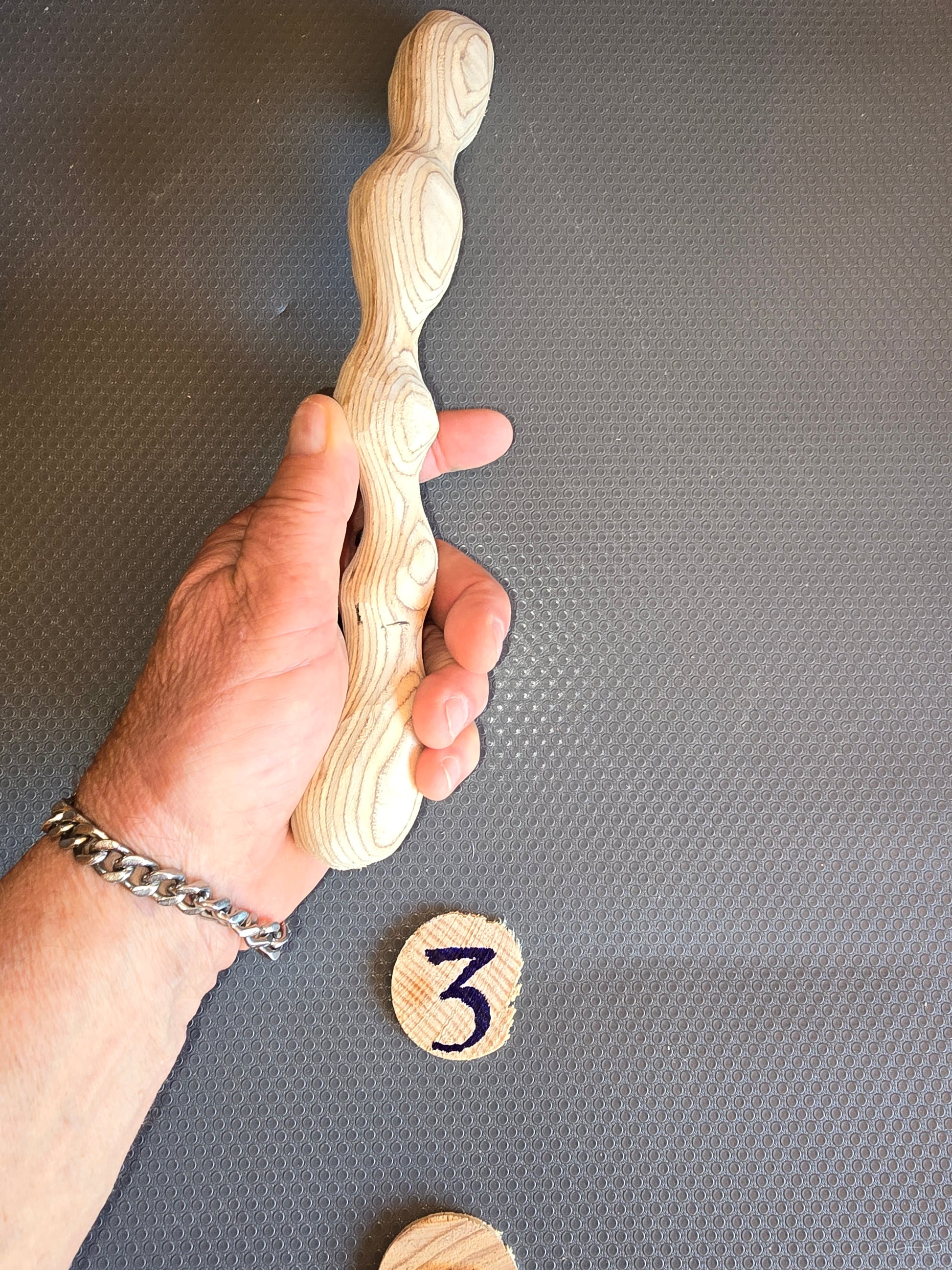 Bei dem " Sadisten" handelt es sich um einen beidseitig nutzbaren Dildo aus Mehrschichtenholz.