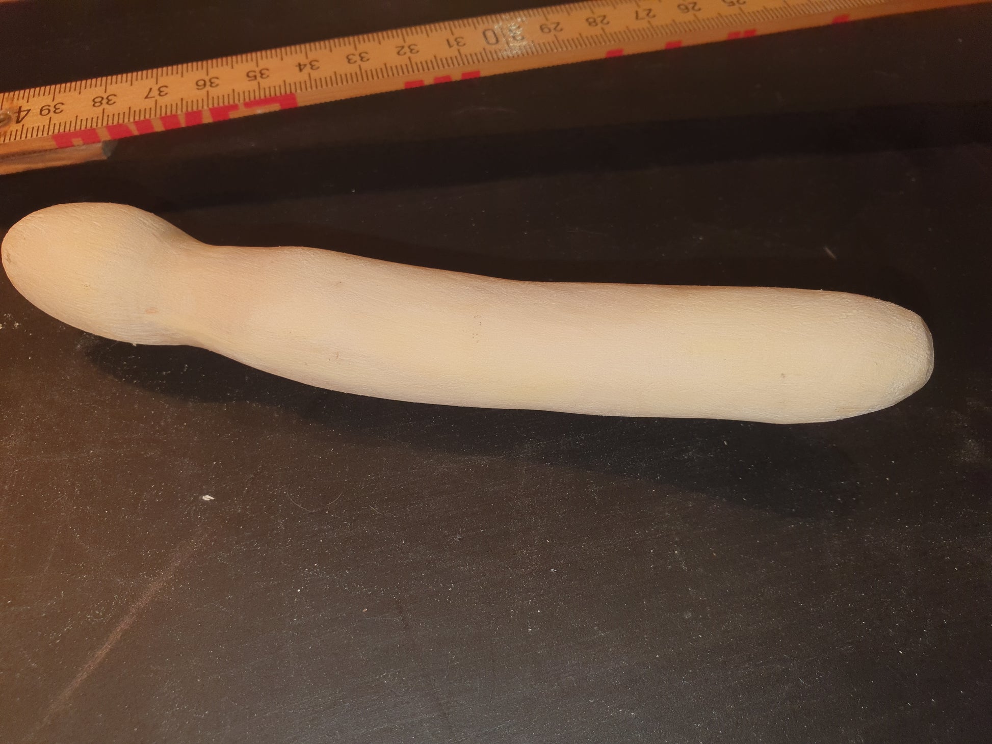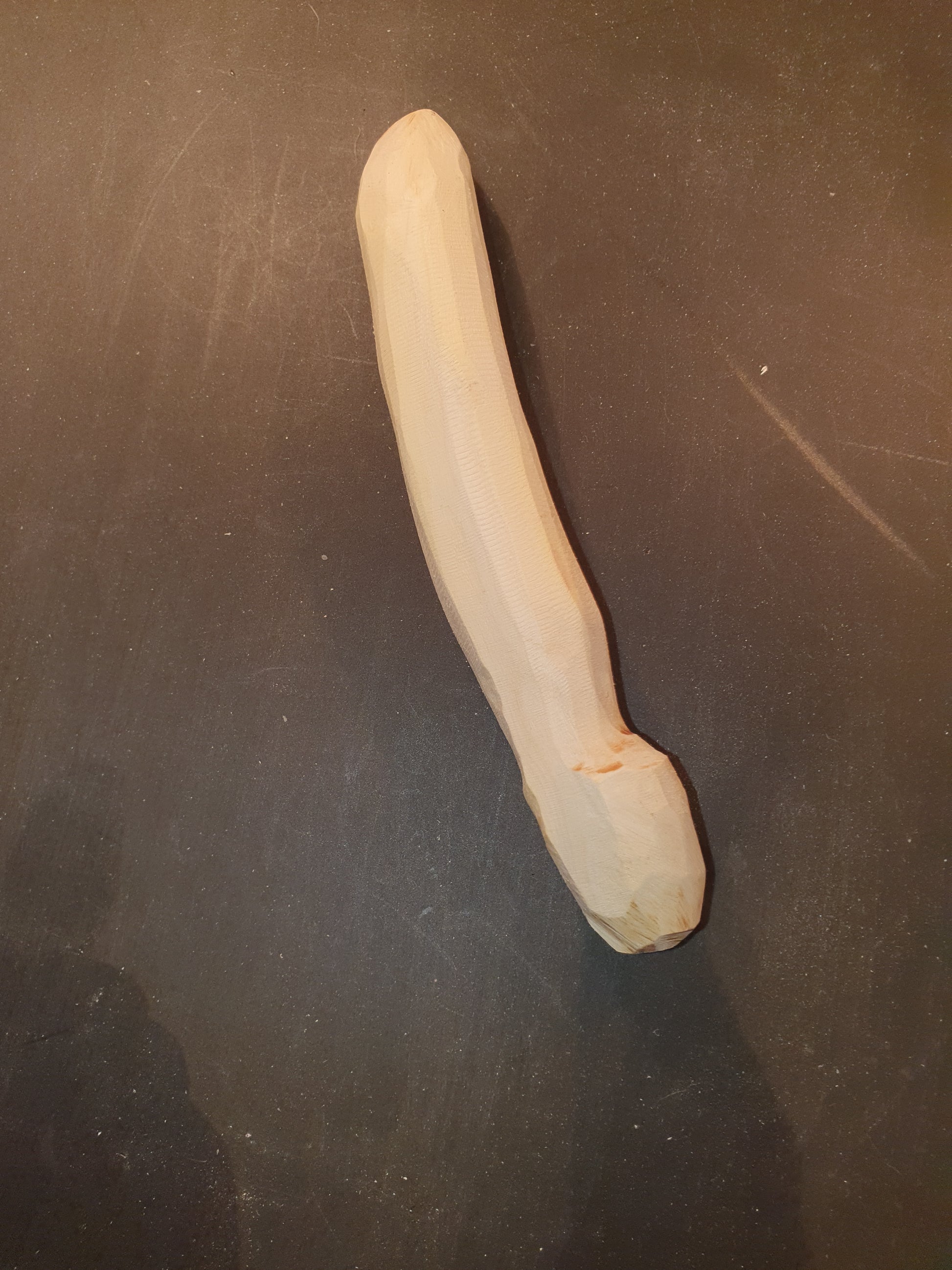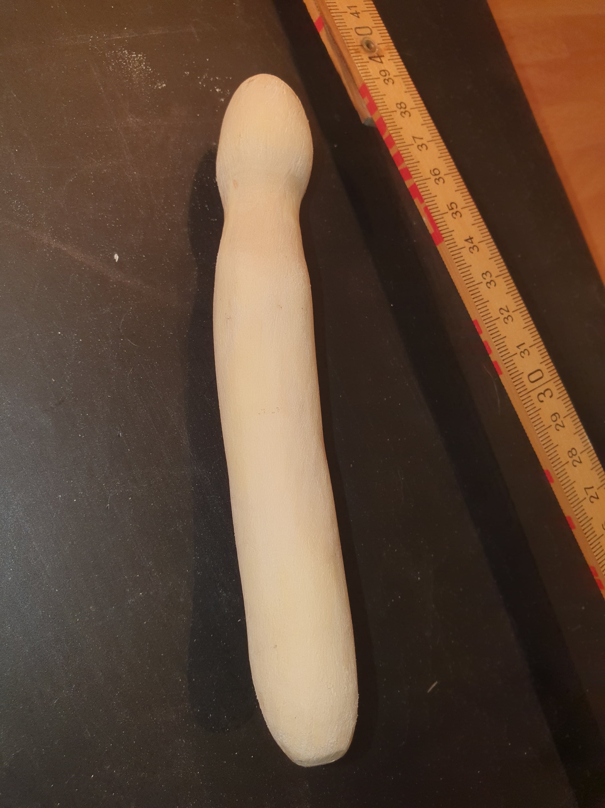 Bei diesem Dildo ist der Weg von einem Holzstück zum Doppeldildo mit Bildern festgehalten, so, wie bei jedem Stück bei meiner Sammlung auch.