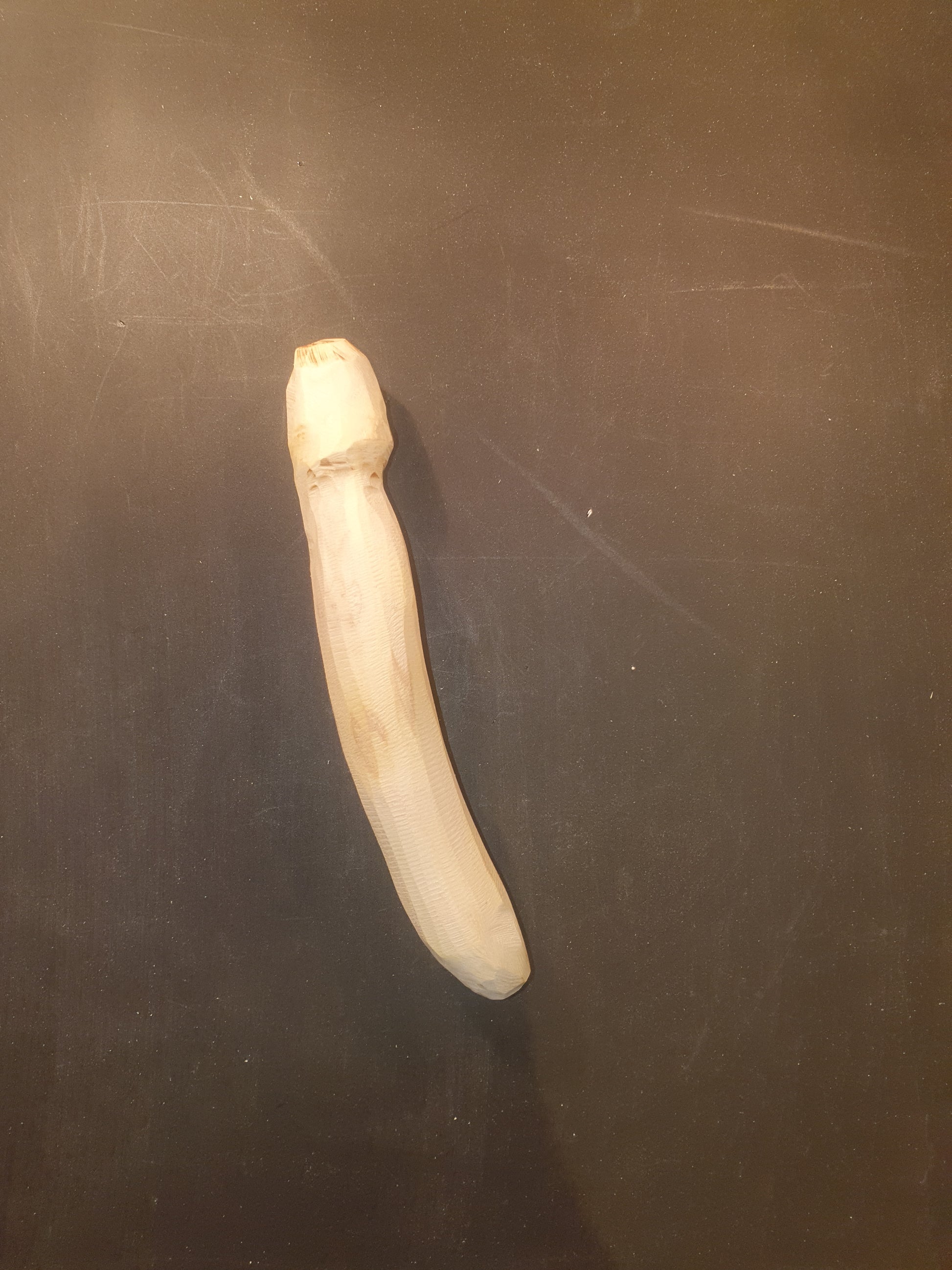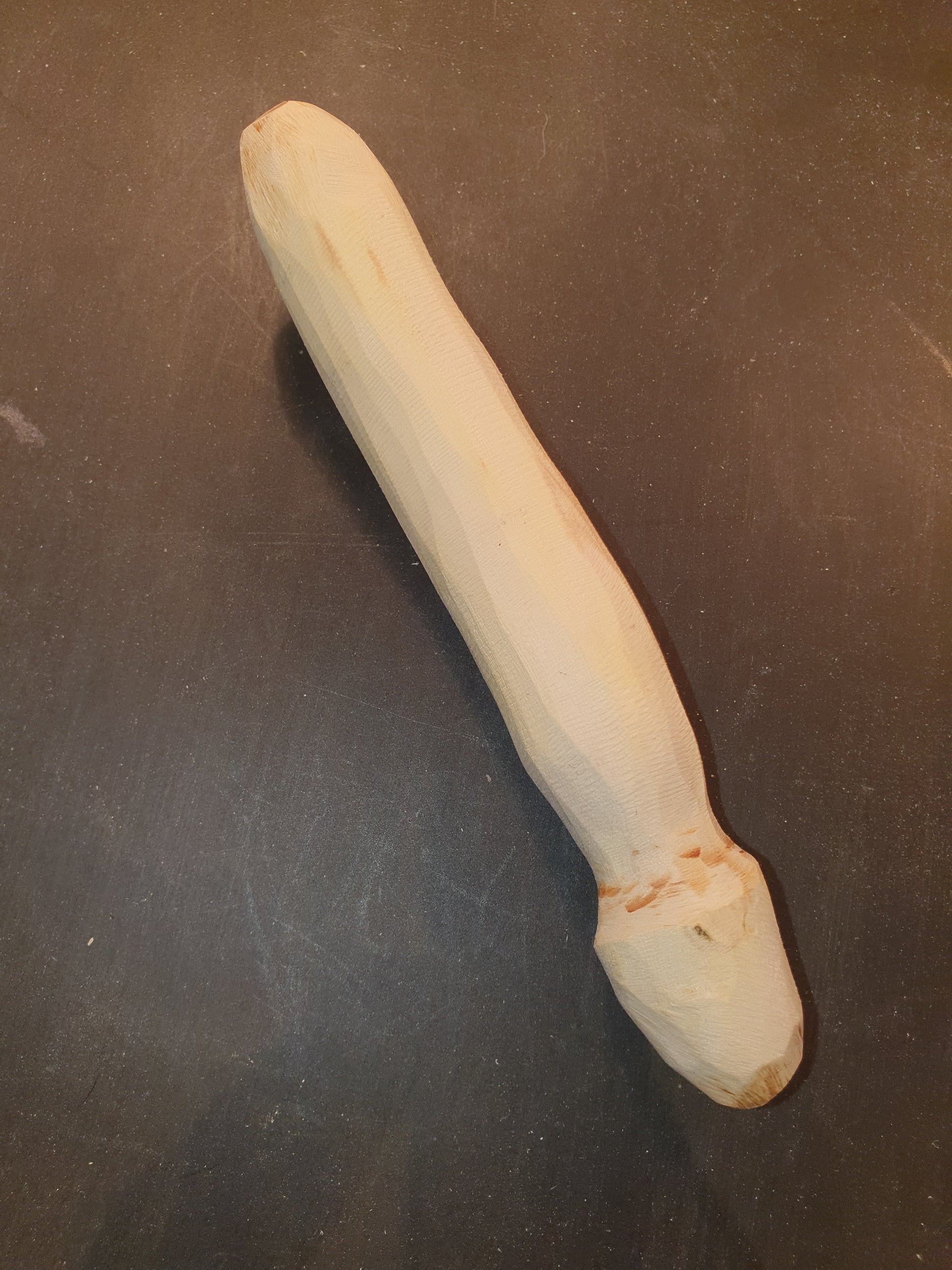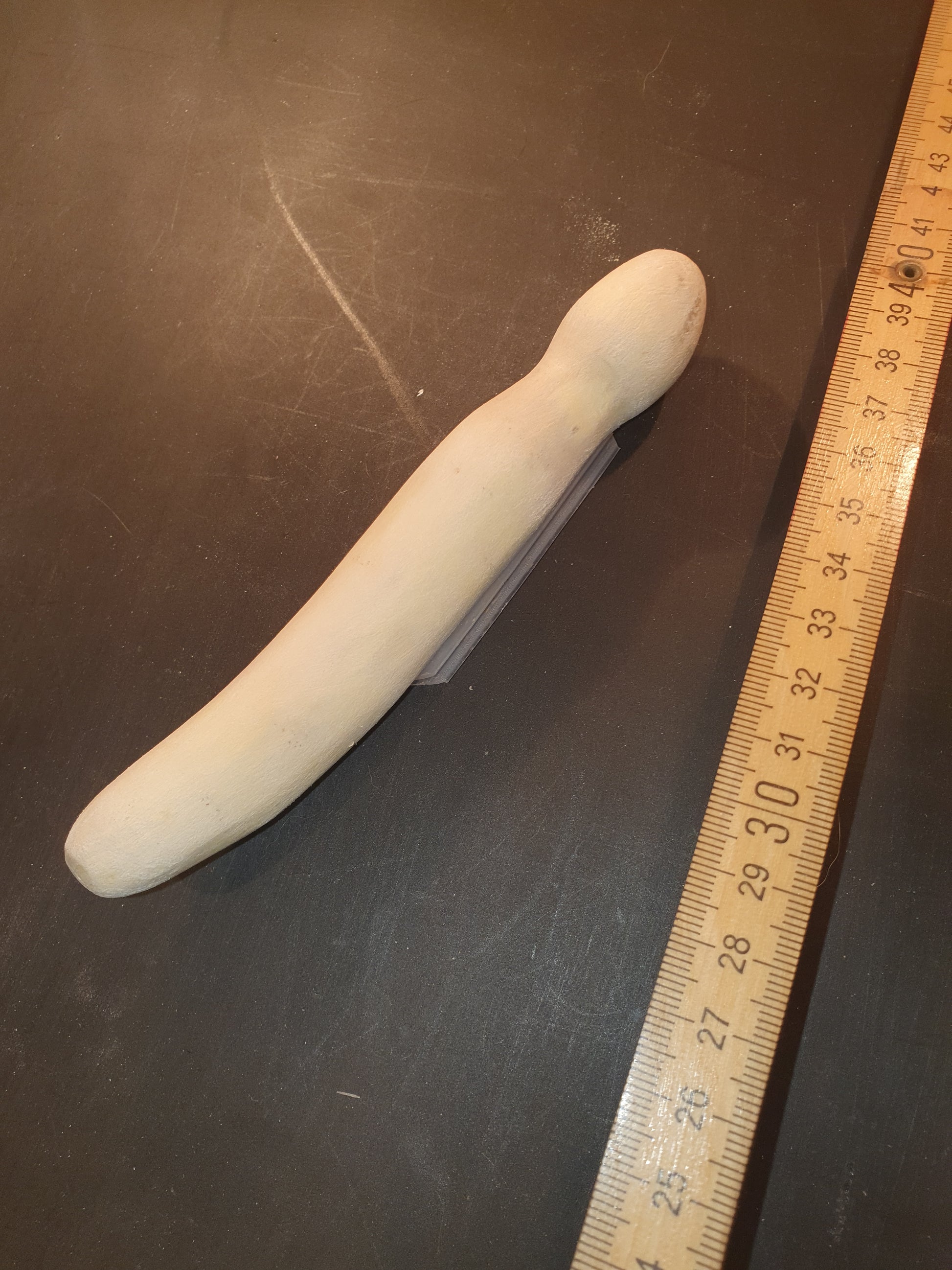 Bei diesem Dildo ist der Weg von einem Holzstück zum Doppeldildo mit Bildern festgehalten, so, wie bei jedem Stück bei meiner Sammlung auch.